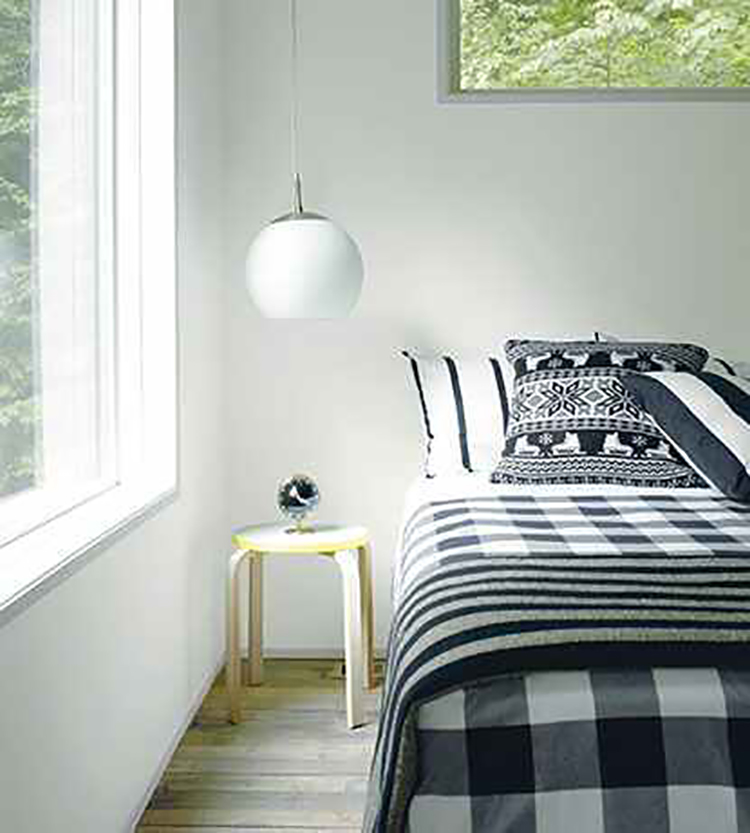 There are also a broad range of neutrals and off whites that can create an equally tranquil space for the bedroom. Always popular paint colors Chantilly Lace OC-65 and Silver Fox 2108-50, both bring a polished, elegant mood to the bedroom. Refreshing and soft, Mellow Pink 2094-70 creates a haven of peace with light gray accents and crisp white textiles. And if you are interested in setting a rich, yet intimate vibe, deep navy Mysterious AF-565 delivers.