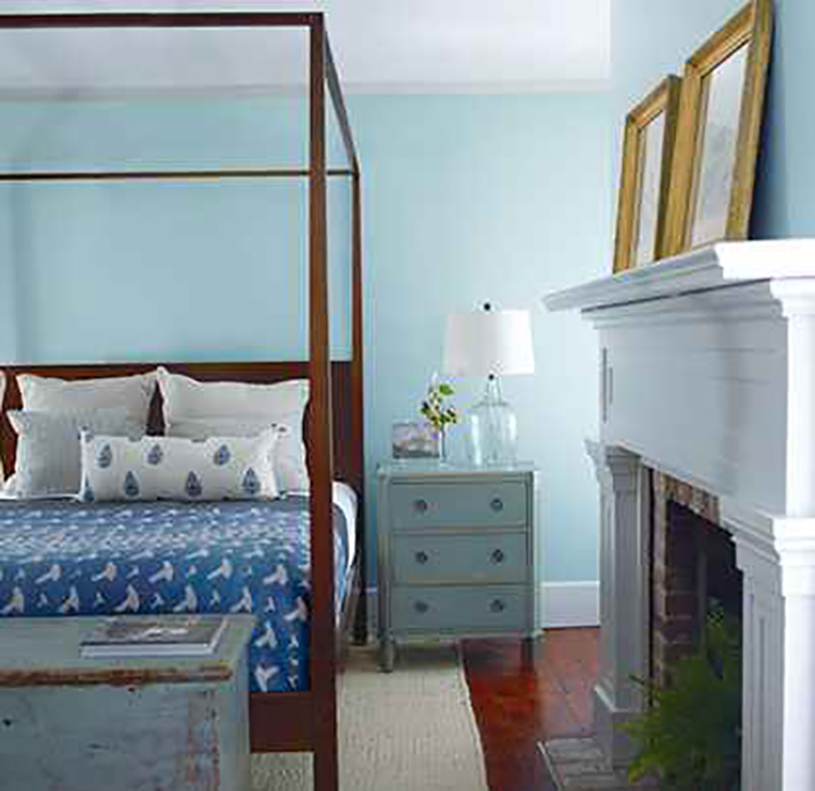When selecting paint colors for the bedroom take your cues from the fabrics used on bedding and window treatments. If you’re overwhelmed by color choices, try pulling a hue from a favorite fabric for a wall color that helps you achieve your design goals.