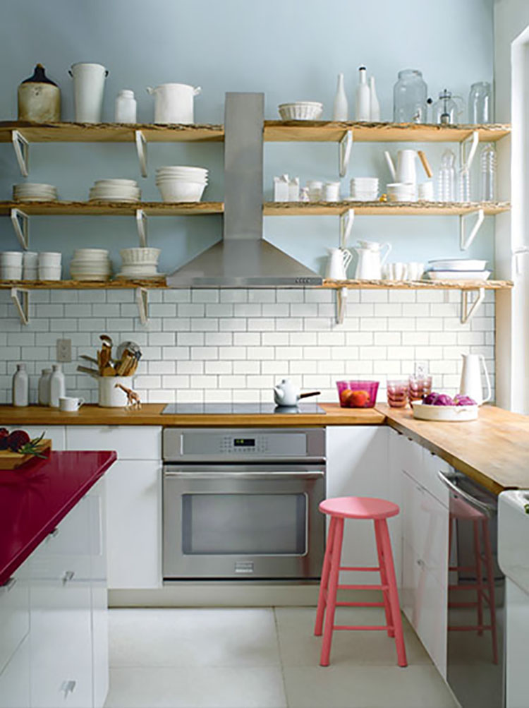 Use this designer tip to add some visual spice to a kitchen filled with neutral countertops and cabinets: Paint one element with a strong, contrasting color. Because of its central location, a dramatic kitchen island can bring a room into focus. Or define one of the activity areas, like a breakfast nook or work area, with paint color. Choose paints with a subtle sheen to enhance the effect such as an eggshell finish.